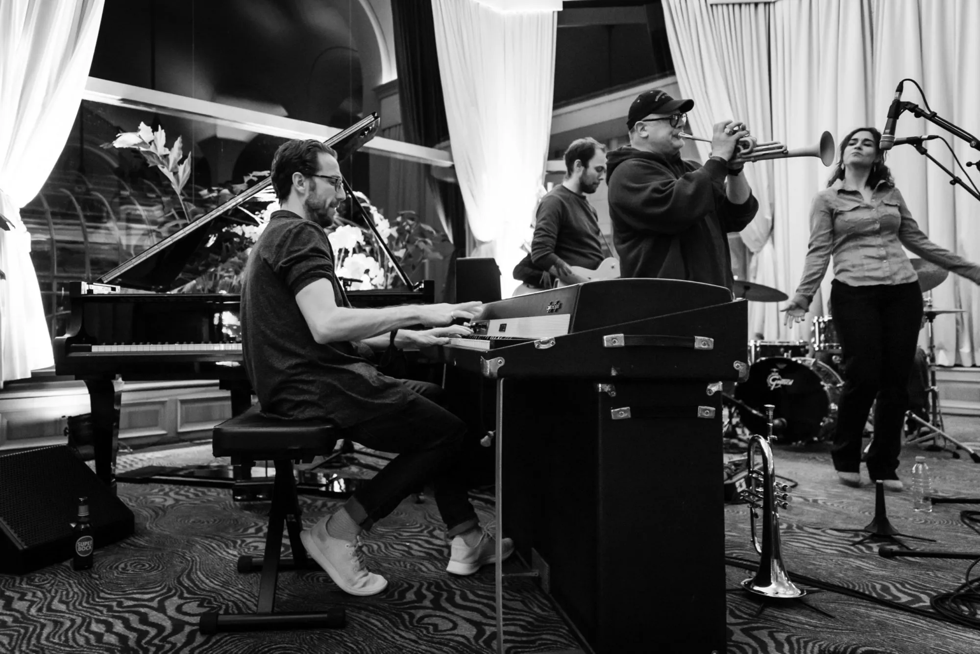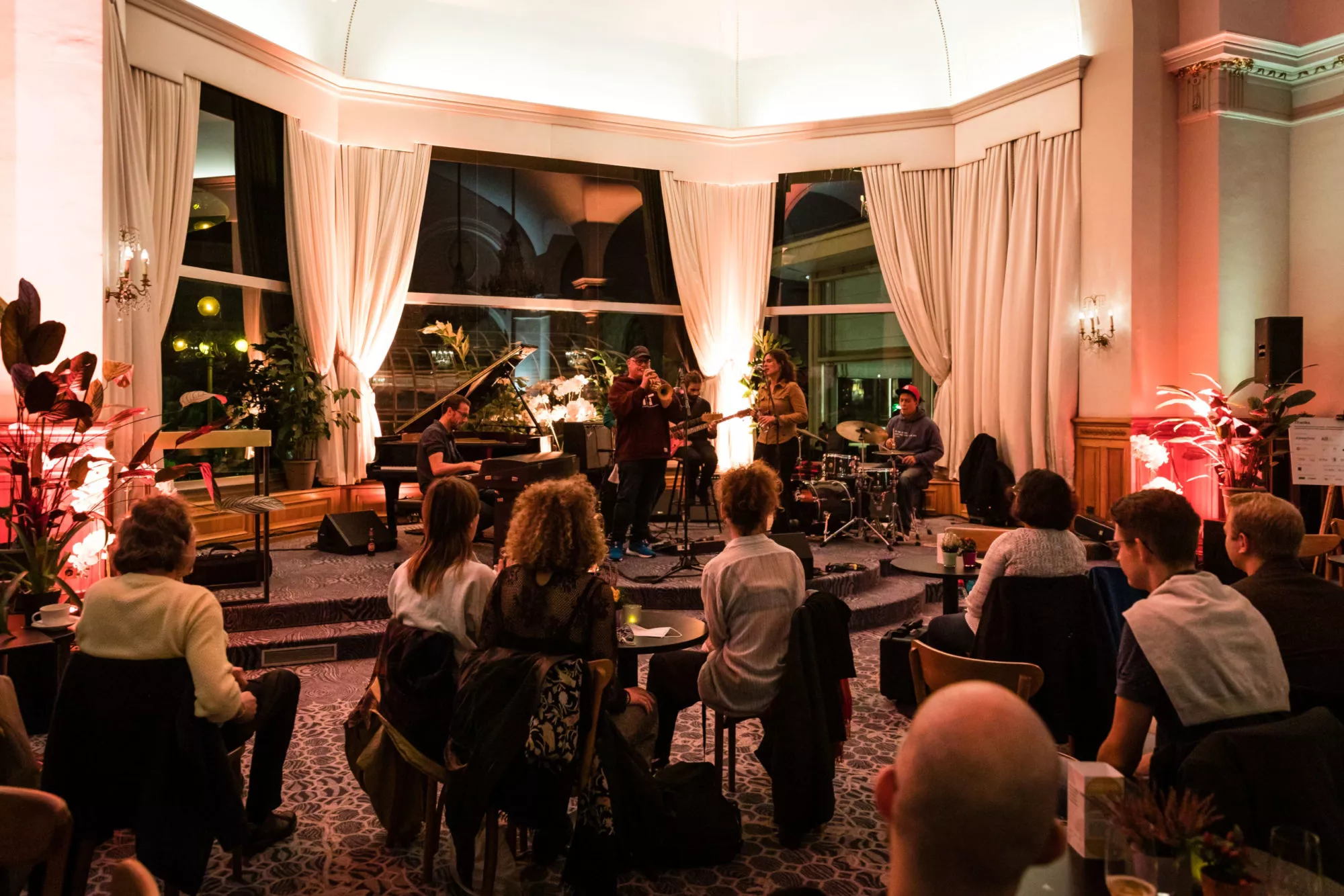 At sunset, Fairmont le Montreux Palace's grand Hall comes alive with jam sessions and their high-flying backing band.