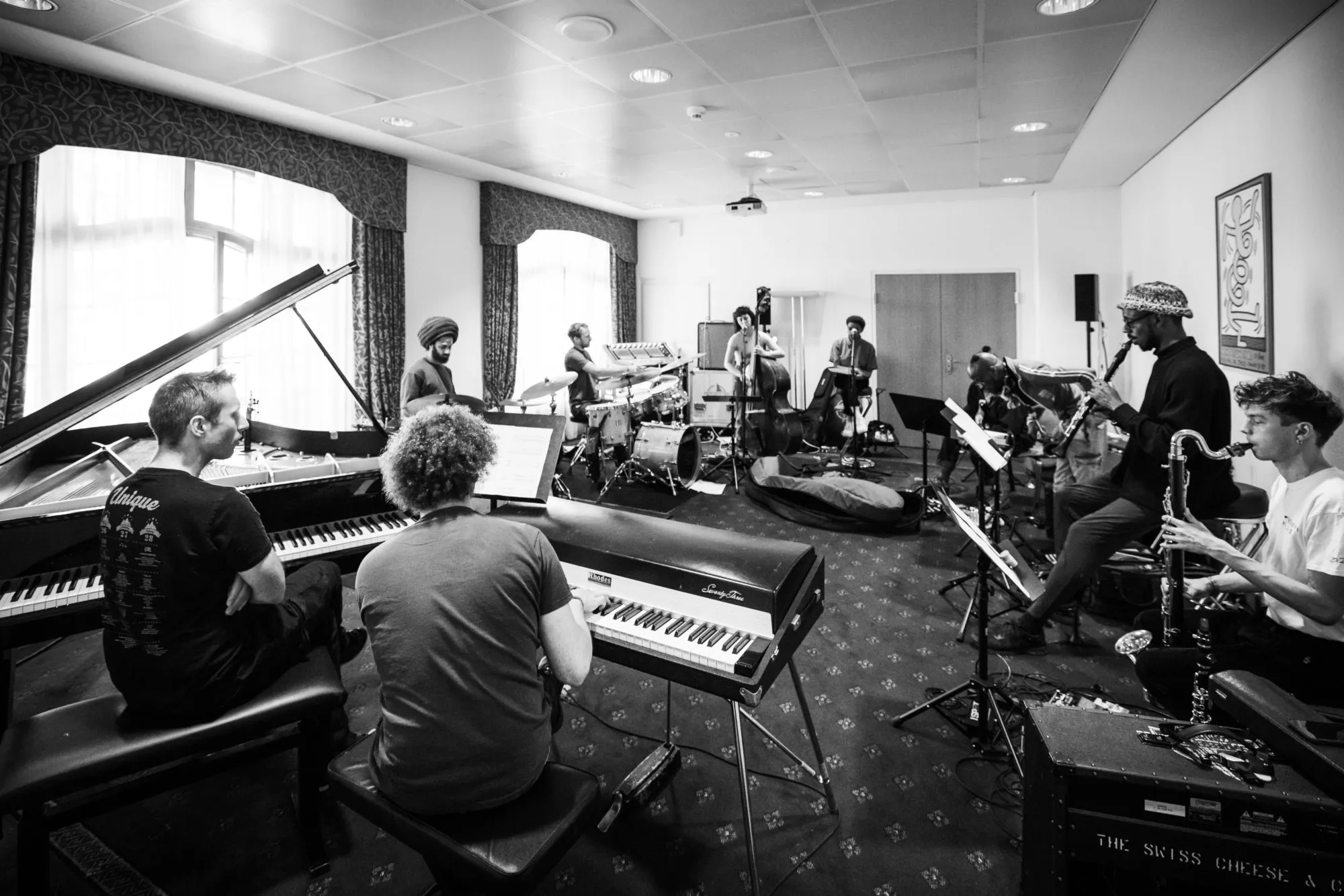 Dans les coulisses du Petit Palais, les jeunes musicien·ne·s et les mentors de la Montreux Jazz Academy ont vécu une semaine forte en émotions avec des ateliers pratiques le matin, des répétitions l’après-midi et les jam sessions en fin de soirée.