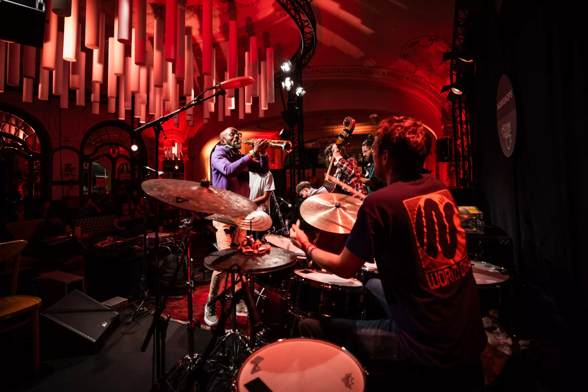 On the Coupole stage, the Workshops and Music Listening Sessions captivated the audience each evening between 6pm and 8pm. Organised with the support of Clarendelle, the Jam Sessions allowed the artists of the Swiss Rising Talent, the Academy and the public to meet on stage for great moments of improvisation.